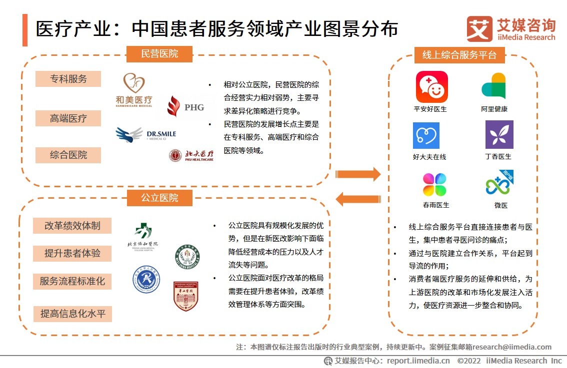 在互联网移动技术和社会医疗消费需求的双重刺激下,大健康产业以用户为核心,研发提升患者服务水平综合的患者服务产品,是大健康产业前端发展的核心之一。艾媒咨询分析师认为,医疗服务的延伸有利于整合与盘活公立和民营医院资源,进一步促使社会资本进入医疗领域。
