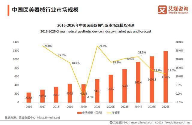 艾媒咨询分析师认为,作为医美行业上游的医美器械企业凭借行业集中度高、议价能力强和高技术壁垒的特点,受益确定性有保障。